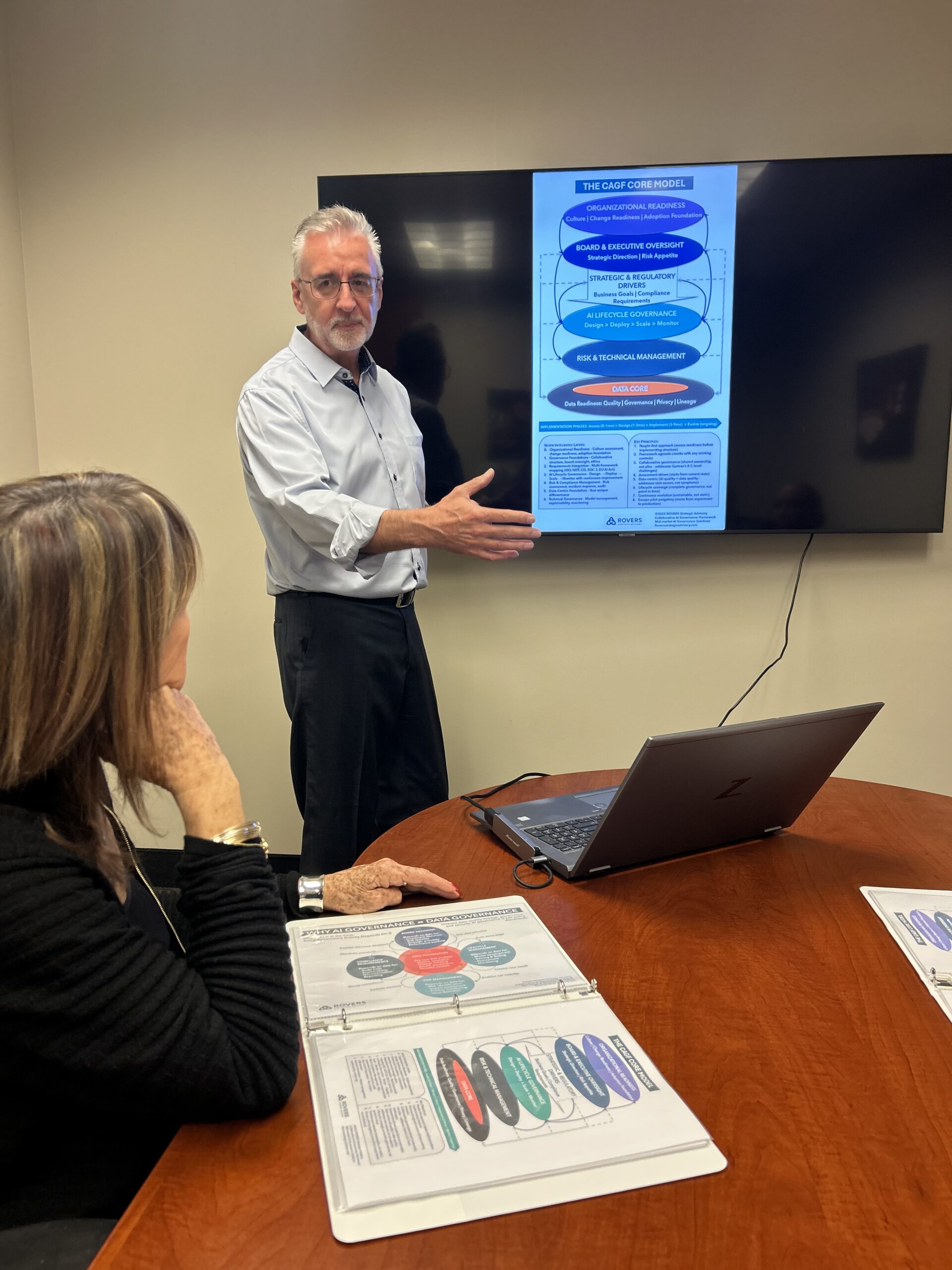 This isn’t a “deliver the binder and leave” engagement. Rovers works as a strategic advisor through your entire implementation journey—from diagnostic assessment through production-ready governance and into continuous evolution.